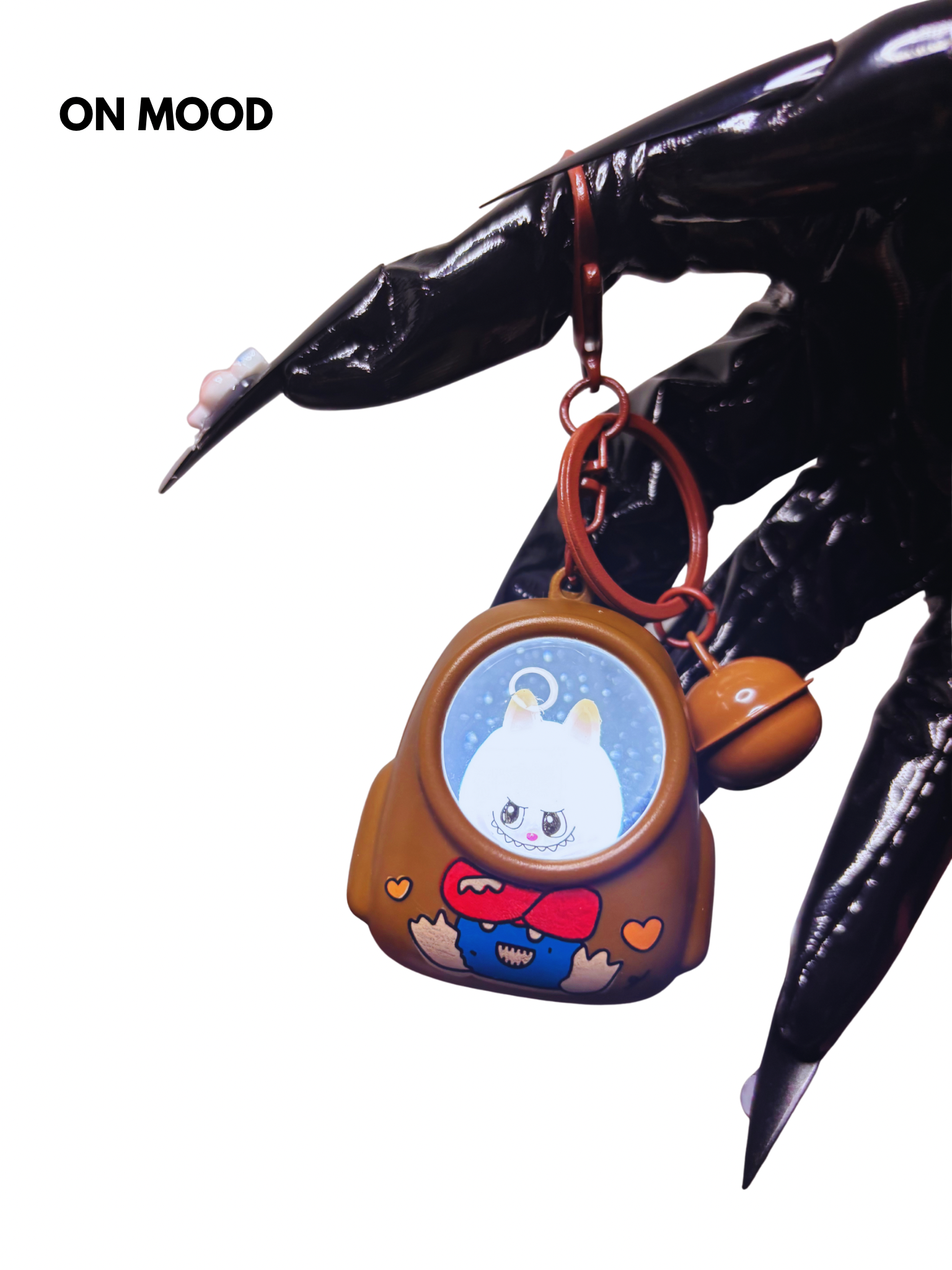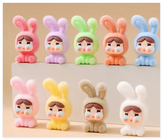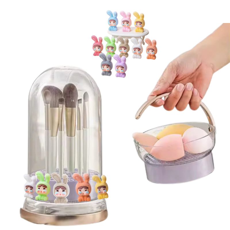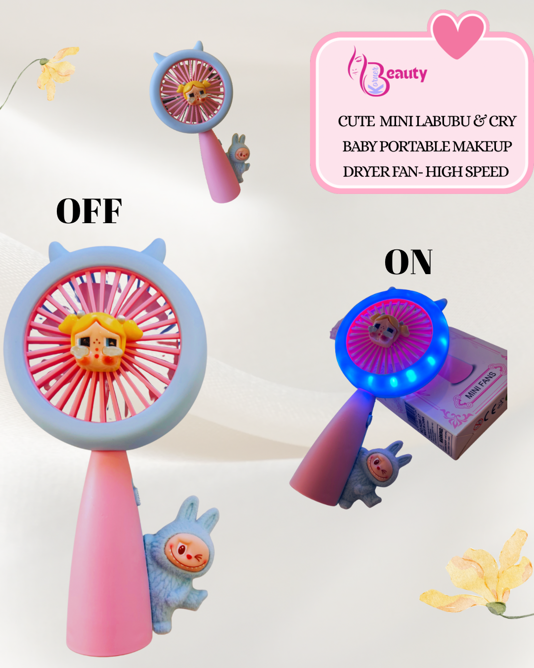 - Cry Baby and laying Labubu design makeup fan with blue lights, comes with a charger