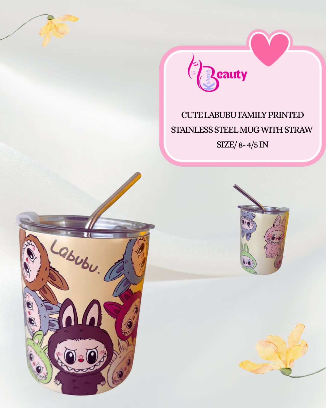 - Waterproof Labubu design printed stainless steel medium size cup with lid, comes stainless steel straw