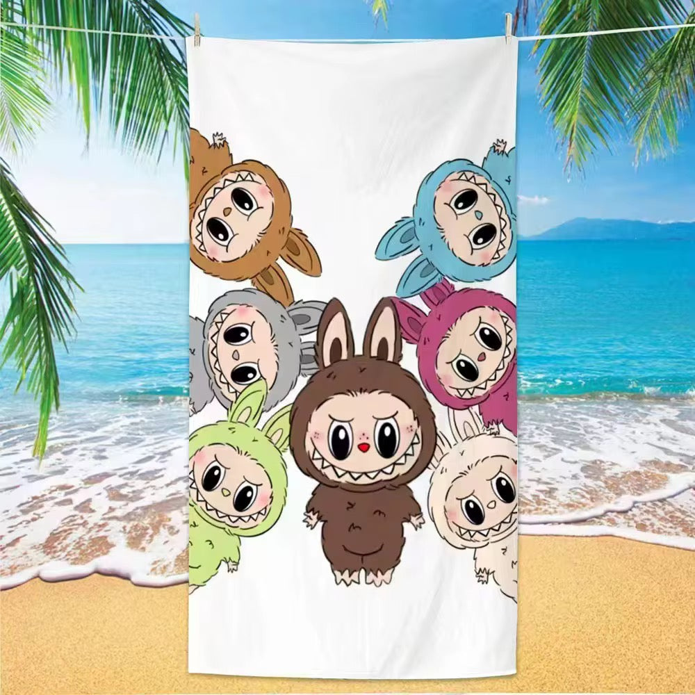 - Medium size labubu printed soft touch thick beach/ swimming towel in white colour